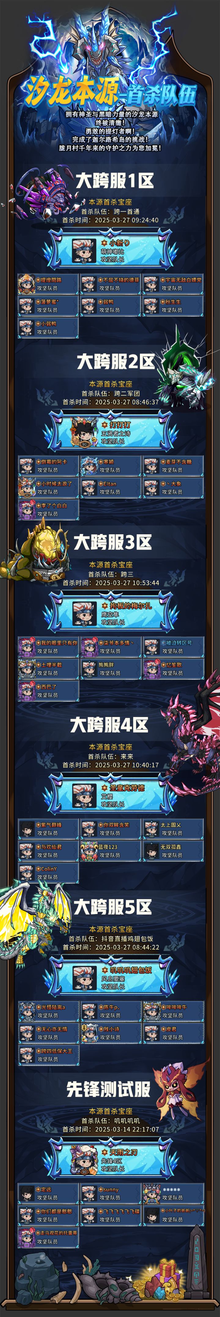 勇士集结!五大跨服区新团本首通队伍名单揭晓!