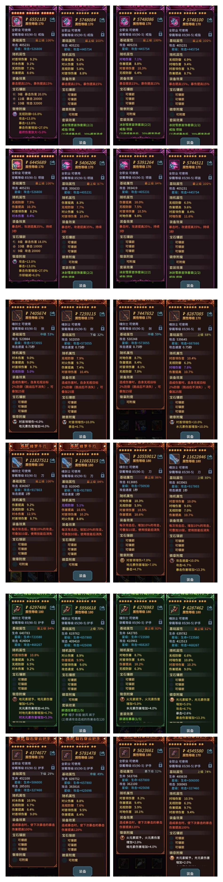 不是这你都不点赞+收藏实测,法师也能用这套——————————————— [ 装 备 选 择 ]武器:灵蛇双拐 [一渊埋骨长湖镇炼狱] 熔岩拳套 [深渊商店兑换](需要火赋予)左边:金耀五件套 [岛屿西部古石巨阵噩梦]右边:黑子戒指 [岛屿西部古石巨阵噩梦] 玄龙暴戒 [汐龙本源](优先) 阴阳项链 [岛屿西部人鱼禁地噩梦]记得生命低于1799w,防御装备不要升星记得生命低于