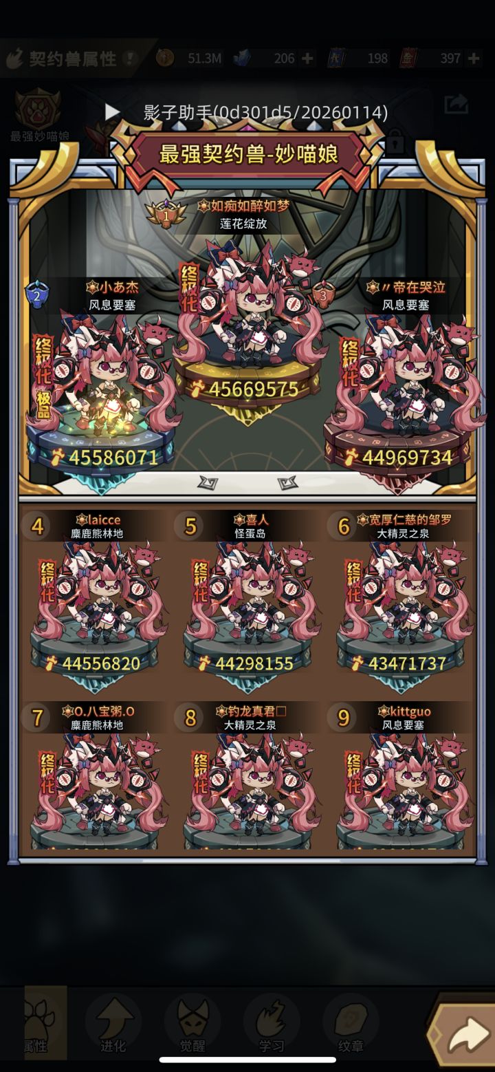 我总结了一下群里大佬的打法,发现可以复刻,我简化了一下,理论上只需要两套装备,两套宠物征战阶梯总共13阶,在资源充分的情况下,前10阶比较容易,这里简单带过1 先说比较特别的11阶常规打法打不动,boss有很多被动减伤buff和限伤,这里需要用我们的平民最爱-宠物流装备:核心装备:武器: 加攻速契约武器 一渊炼狱裂隙戒指: 契约戒指 一渊炼狱裂隙护腿: 契约护腿 一渊炼狱裂隙衣服