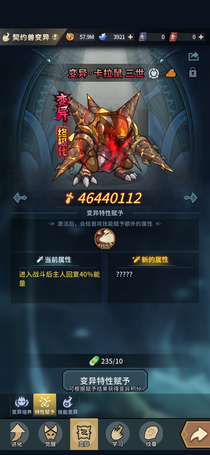 属性如图,我配33变异龙、33变异狐狸、33变异兔都容易被秒,真的好奇怪,打了好多个小时快崩溃了