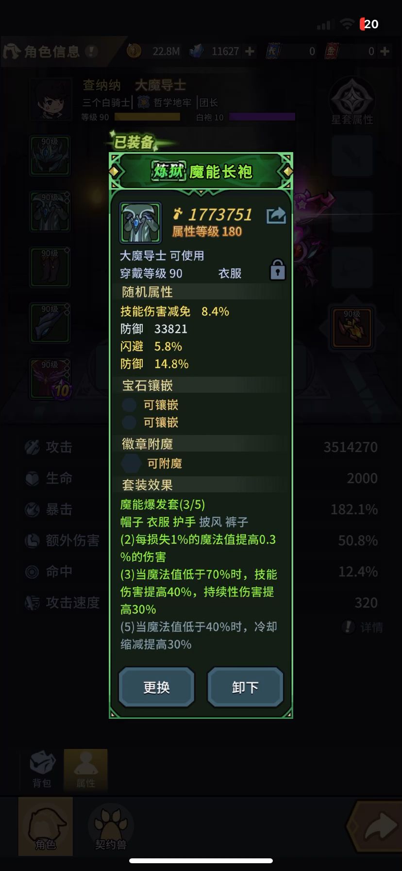 装备配置: 无敌头+金耀2+狂血鞋+爆伤护手+冰护+占星项链+冰晶戒指 属性洗炼: 首领伤害+伤害提高+对元素增伤+技能伤害/攻击力/爆伤提高 圣物: 额外伤害提高 契约兽: 33鲸鱼+33漆戟仙+33老鼠 附魔属性 光属性攻击,攻击力%暴击爆伤命中等