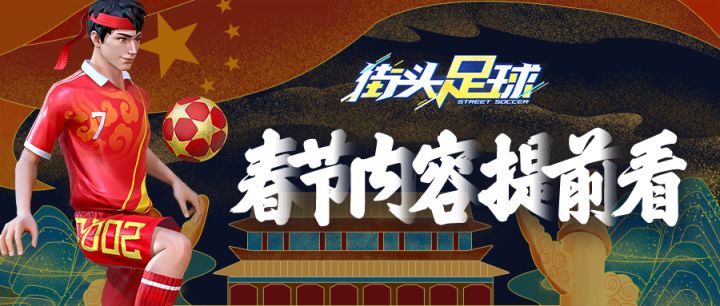 春节活动即将开始!一起看看街足会给小将们带来哪些惊喜~新春新气象,C罗新皮肤牛气降临,带来一年新球运新年玩法多,春节系列活动携手来贺,假期开黑不寂寞新年新机会,强力球员、稀有皮肤限时开放获取,助你旗开胜亦得新年新造型,新头像、头像框、新名片,焕然一新气质显新年去晦气,bug修复不要停,流畅游戏才最牛以上内容为版本预告,实际情况以游戏内为准哦~本期兑换码:XIAONIANKUAILE设