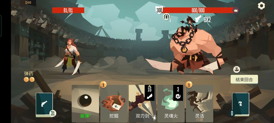 装备核心: 铃铛:单次攻击超过20点摸一张卡。 拳套:回合内每用一张近战卡加一点近战伤害。 卡片核心: 双刃大剑:20点攻击力,扣5点血。 声东击西:8点攻击力,对后一个敌人暴击。 通关思路: 1.铃铛作为主要拿卡手段,前期没双刃大剑伤害不足,可以靠拳套把声东击西的暴击伤害提到20点。飞刀的伤害也容易达到20点,可以作为摸牌启动器。 2.声东击西可以对抗前排反伤,用后排的高额伤害吸血来