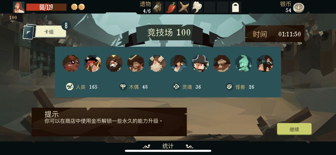玩了几周了,竞技场总算通关了一次,简单的说一下自己对于刚入坑的萌新的建议 1.关于角色强度的问题,一开始我刚入坑时在这边论坛上搜角色梯度排行,按照上面排的靠前的角色解锁了几个游玩了,个人感觉有一些的排名不准确,一些角色被低估了,就比如抢手排t1,剑术大师排t3,得自己实操了才能感觉真正的强度,不能盲目跟进买角色 2.推荐萌新一开始金币攒着不要乱花,等声望够了在商店买各种强化药水,也可以买商店里的卡