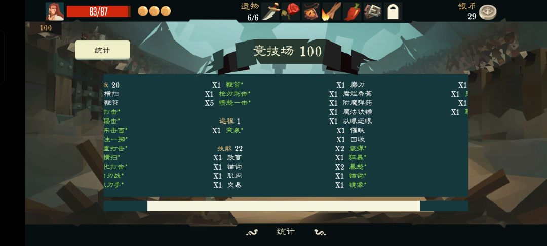 1小时27分,剑客高效通关,基本思路方法如下: 1.几个前提:商店的升级药水类全入,遗物栏扩容1格(6格); 2.竞技场第一关结束找商人刷黄金雕像:刀,前期配合每场结算后的近战卡牌,保障前期的基本战力,也能省费用,如果第一场没刷出来,建议退出重新刷第一关,刷到为止,保证后续高效比; 3.攒钱刷中前期核心遗物“暴击套装”:仪式吊坠+盗贼匕首+玫瑰,前两者保障基本零费暴击输出,玫瑰配合回血,保证基础续