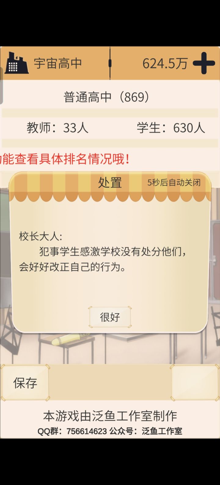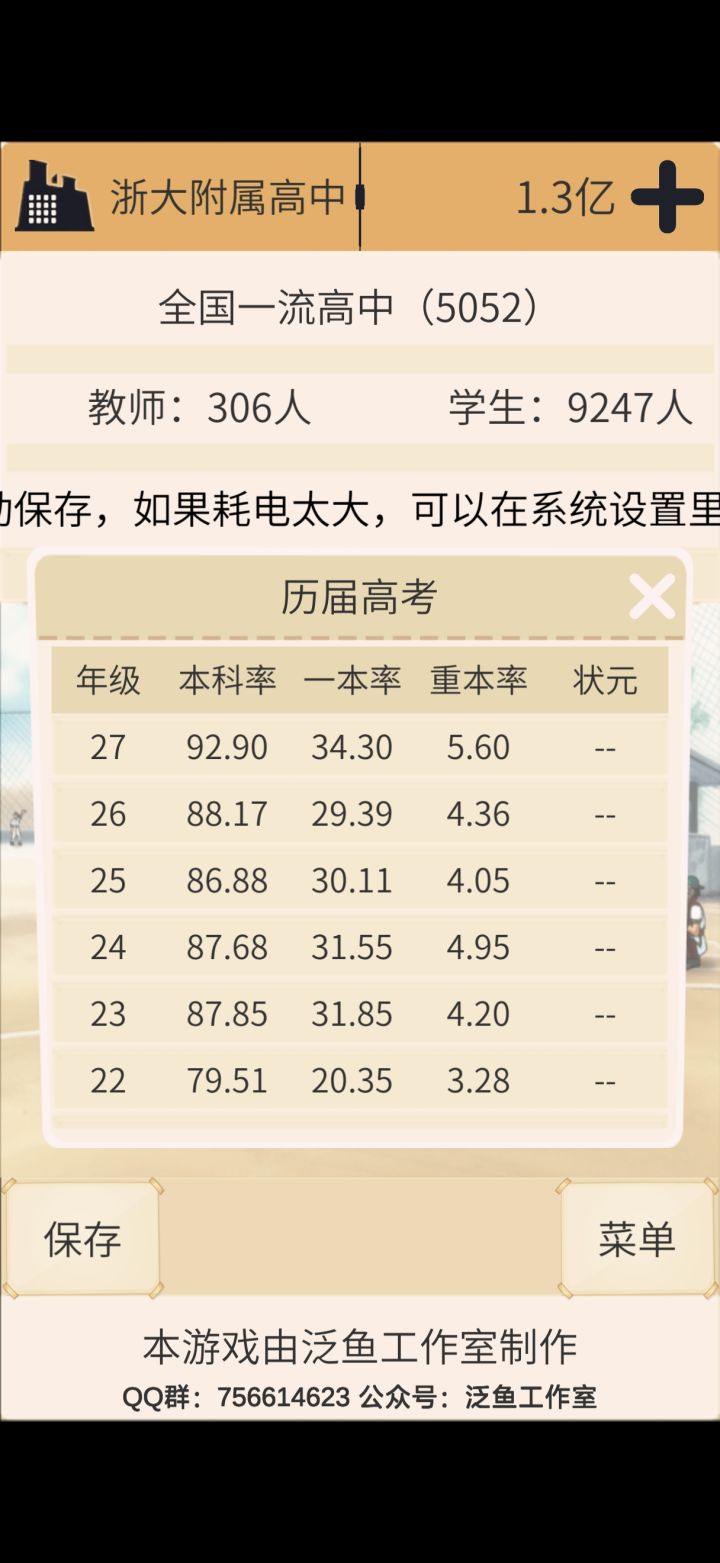 1:招生数量太多会影响优秀学生比例,并且300多名教师中应该是有一部分职称不高,会影响教学质量(建议后面招生按照最高学费而且不搞招生费用,提升职称及裁掉一批低职称教师)2:修建或升级高等级的教学楼、图书馆、实验楼等(这么多学生估计有些楼等级跟不上,建议后期招生还是按第一条的做,再把一些低等级多余楼拆掉还能得钱)3:将每个年级的课程压力都设置成480(只安排一节体育课其他都选文化课,主科多排一些或哪个科目厉害老师多也多排)每个年级采用增加平时作业和周末上课政策4:平常节假日都正常放,学生犯了错尽量选择教育(有较大概率会反省然后在此基础上往上升一个等级,比如说B升A)以上就是我遇到这种情况的措施及相应届的成绩