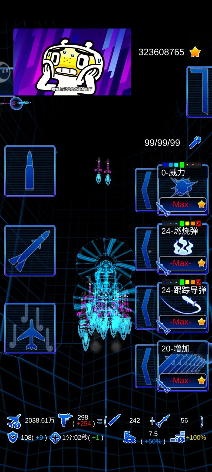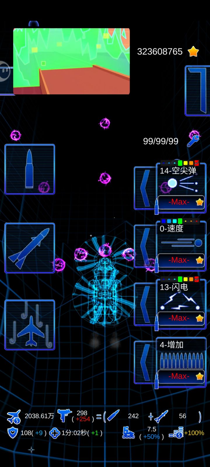 新人先开散弹,飞机初始的就可以,不满意买那个一千的速度比较快,飞行员最重要,最后一个飞行员是金钱翻倍,有了这个飞行员升到2级就主点跟踪导弹数量打BOSS,一波肥之后就随意玩了,不懂可以看图