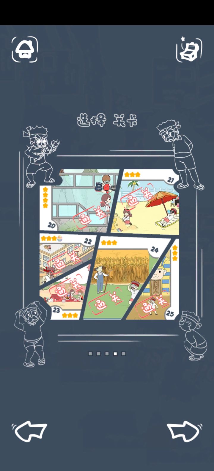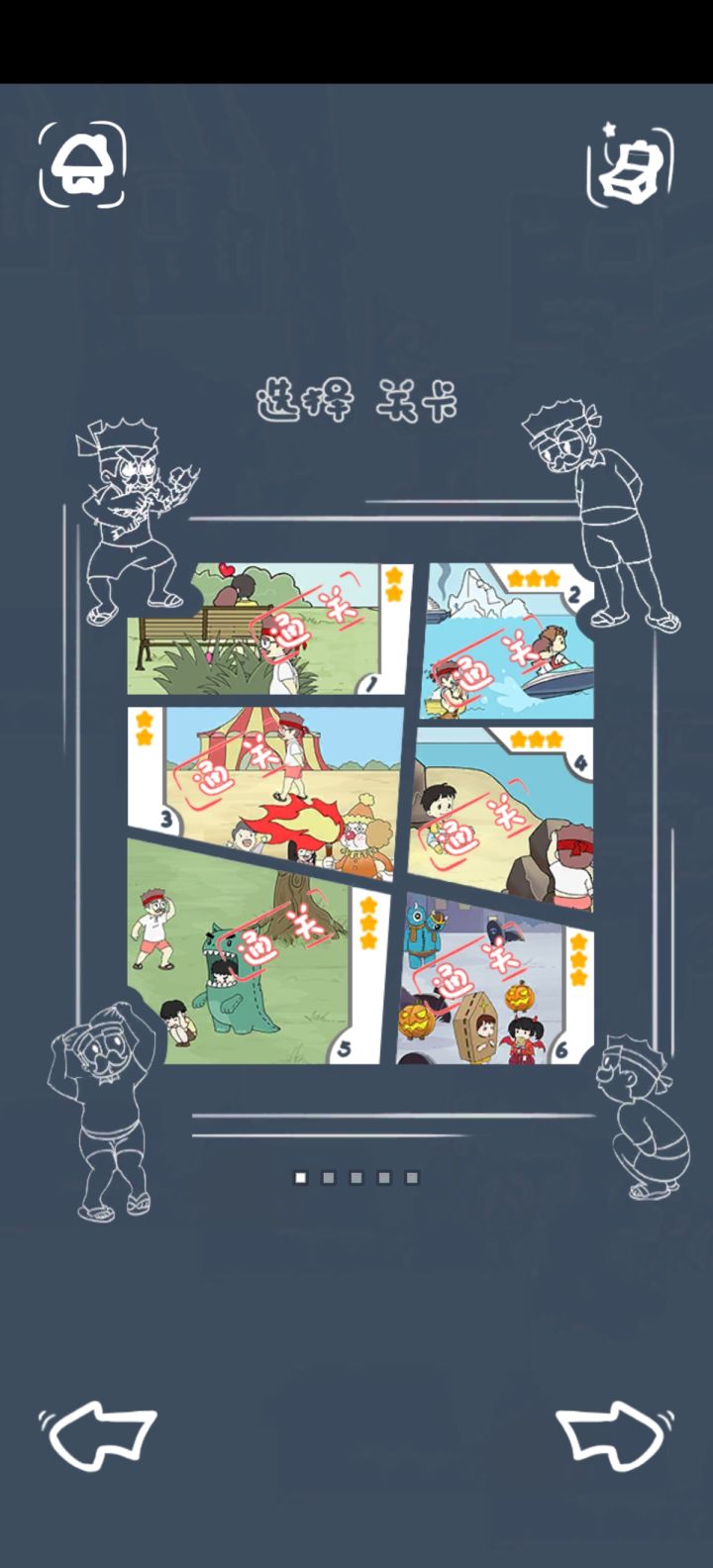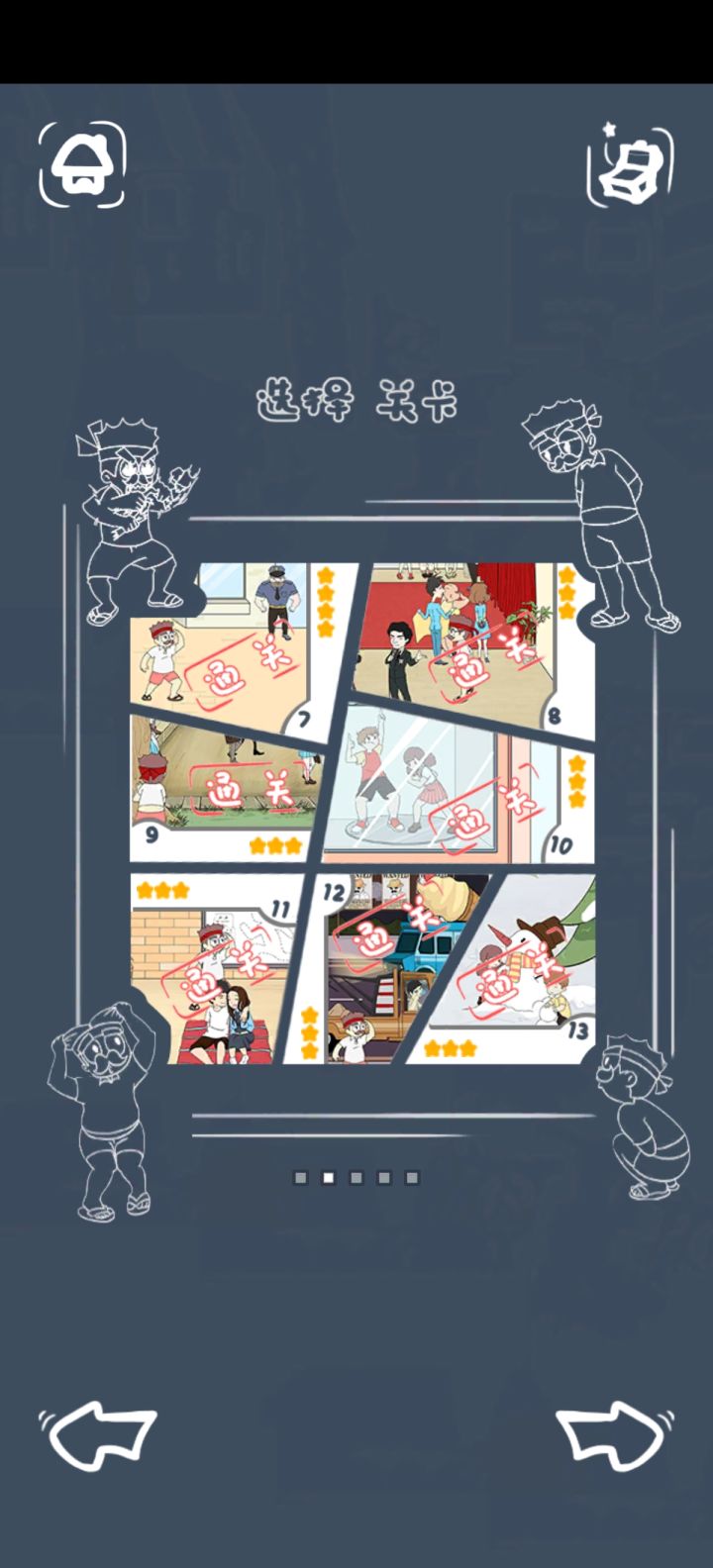 直接通关按★号走第一关①第一页点情侣,打错人,道歉。②★第二页点击树,打女婿👍第二关①一直不动,放着,直到游艇开走。②点巨轮上的船帆,放在爸爸的小船上,爸爸被吹走。③★点击第二个冰山(巨轮撞的冰山是第一个),点击潜水艇,再点潜水艇上的螺旋桨,安在爸爸的小船上,女婿跳船。第三关①点第二页表演喷火的小丑,爸爸会被烧头。②★点骑独轮车小丑手上的粉色波点气球🎈,把气球交给喷火小丑获得火