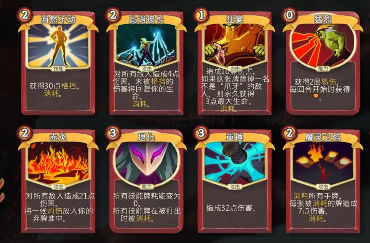 勇士有喜欢直接挂上力量点数,每回合结束都能怎么力量,只要能扛得住最后直接秒掉对面。可惜总是一次遇到四个怪。打单个怪物比较适合,最好留个群体攻击牌。