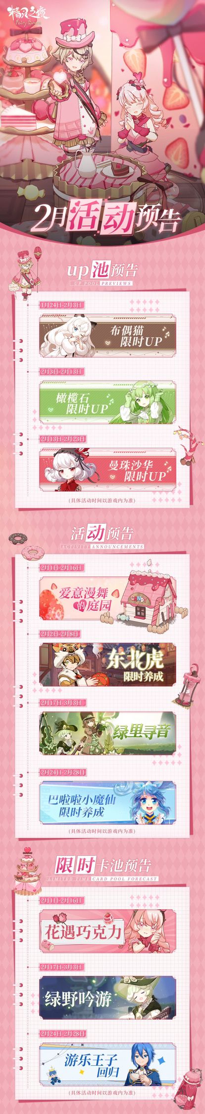 作为一个玩过测试且早早预约正式服上线第一天就下载的玩家来说,虽然中间也退过,但每次都是几天就又下回来了,看了看有人发的池子总结,我一共就错过了两期池子,其他每个都有参与,我真的对可爱的东西没有抵抗力,我还是爱摆的人,所以小精灵们真的让我爱不释手,从没打算真正放弃过,虽然我非,可是这里让我感到轻松,舒适,1周年的时候,我是过的很开心的,不仅是活动多,更多的是崽崽们都一岁了,但是现在官方不发预告,台服