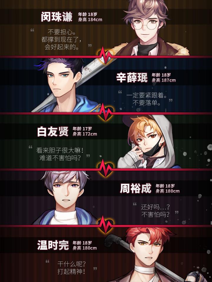 🎮游戏名:《危险的家伙们》/《dangerous fellows》 🔎平台:Steam|IOS(外)|Android 💜💜💜💜💜💜💜💜 💀不明丧🔟来袭,孤身一人在超市寻找食物的时候遭到丧🔟袭击! 突然天降五位男高中生击退丧🔟,于是我跟随他们来到了避难的校园里。 💀信任、合作、猜疑、内鬼、争端、失踪……在这里,可不仅仅只有丧🔟的威胁! - 💗努力获取这群男高中生的好感吧!不同的好感度会解