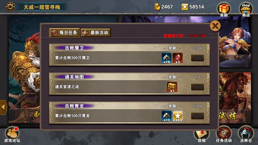 武将选贾诩赵云,贾诩(帝江,金衣,赤兔马,黑甲手环,龙佩,兜帽等),赵云(凶邪,黑熊,东皇,狂魔头,霸王枪等),进入游戏先把战术卡选好,射手护盾必选其他自选,武将移动弓手营购买神射手对战颜良,难度适中注意节省法力,击败后移动到最东边打匪巢,先杀敌两队投弹手后再打城堡,城堡摧毁众土匪出现,利用贾诩火攻个个击杀掉后封堵的障碍打开了,古井补满法力后去斩文丑。赵云后动待敌出场,贾诩火攻城内兵种,过关爆不爆