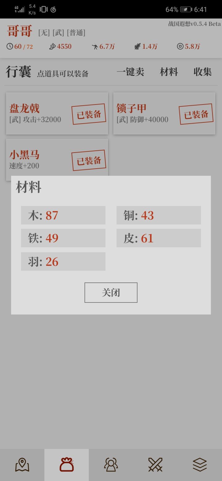 战国遐想0.5.4版本更新,降低了新手难度,普通困难难度也降低了,现在战国难度适中,人物挑战难度也适中,新结局剑扫六合也很好玩。