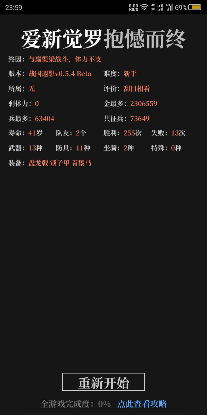 从一开始莫名其妙地死掉,到能招募8个队友一起走到马陵之战……我的游戏没法看广告,就这么艰难地……一到马陵之战就死掉!一到就死掉!我试过买了盘龙戟,带一万多兵过不了……试过青铜双戟带两万六的兵过不了……试过找历史原因,到围魏救赵地中心大梁以及远离战场的咸阳……然而过不了,就是过不了……我能怎么办?我在马陵之战的节点上绝望……