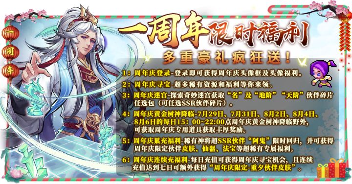 各位尊敬的修者大人:在您看到这篇文章时,我们的《一剑断念》已经陪伴大家度过了一年的时光,我们清晰地记得您在这1年时间中,在修真世界中所经历的点点滴滴,正是有您在左莫身边陪伴他一起闯荡,造就了修真界一个又一个不朽的传奇;即将到来的一周年庆典中,我们为所有喜爱《一剑断念》的修者大人们准备了丰富多彩的福利活动,希望大家能在庆典活动中玩得开心、福利拿到手软!活动壹-周年庆翻翻乐!活动时间:7月 28