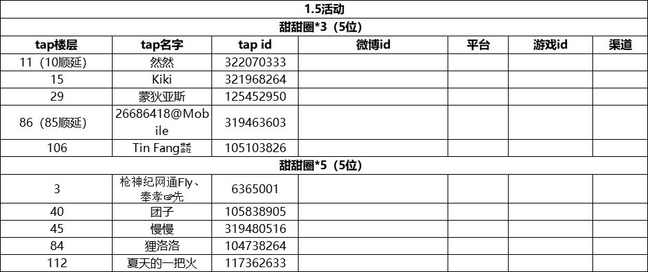 (此次抽奖前5个为3甜甜圈,后5个为5甜甜圈) 因为tap的特殊性及为了保护小岛主的账号安全,请各位中奖的小岛主尽快将tap个人信息界面截图并私聊【悠长假期手游】微博,我们将会在此小岛主回复日期起7个工作日内发放奖品 注:周末私聊不一定会及时回复,在工作日会发放的