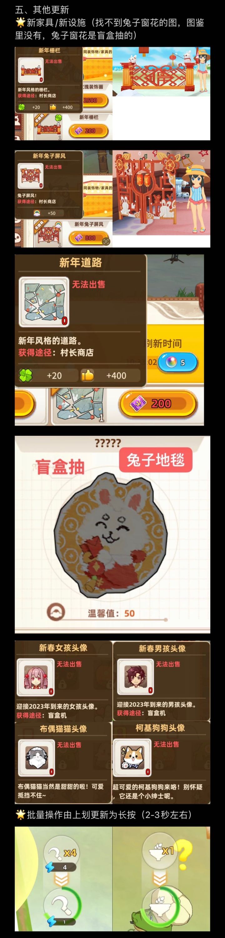我也很想见你。想告诉你现在的集市不用靠抢了,想告诉你现在有4个组队了,挖矿不用打工了,增加了钓鱼捕虫捞贝壳的组队了,我们称其为一条了。想跟你说出了新的作物,我们拥有了新的岛主挑战,多种多样的道具,甚至有可以飞天的雪橇和游海的噗噗车,小屋也穿上了新装,时间总会一直流逝,我们也在一直成长,只是,我们等不到更新,也等不到你。