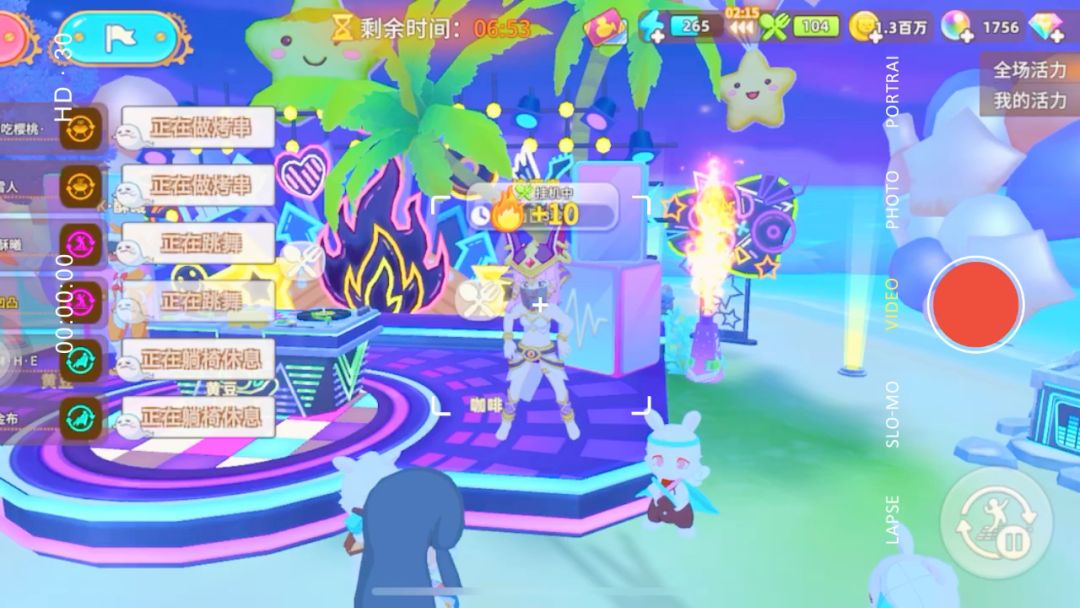 DJ 4s 11🔥 跳舞3s 10🔥 烧烤4s 10🔥 躺椅4s 8🔥 宝箱10-50🔥 随机 跳舞>DJ>烧烤>躺椅 备注:冷却及时更换 成绩汇总:实际获取✘加成 ①场景开通加成50% ②按照排名加成20% 15% 10% 5%