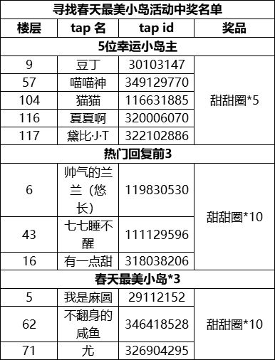 【评论抽奖】最近的春色和气温都在诉说着春天的到来,可惜气温却打了个回马枪,各位小岛主还需继续注意身体呀。那么我们在悠长海岛上先寻找春天吧,寻找春天最美小岛活动开始,配合衣服的装饰说不定会有加分呢~截止到3月28日11:00,我们会在所有评论(无论是否带图)的小岛主中抽选出5位幸运小岛主送上【甜甜圈*5】,同时我们会在活动结束时,以taptap的热门回复排序为前三名的小岛主和除这三位小岛主以外3
