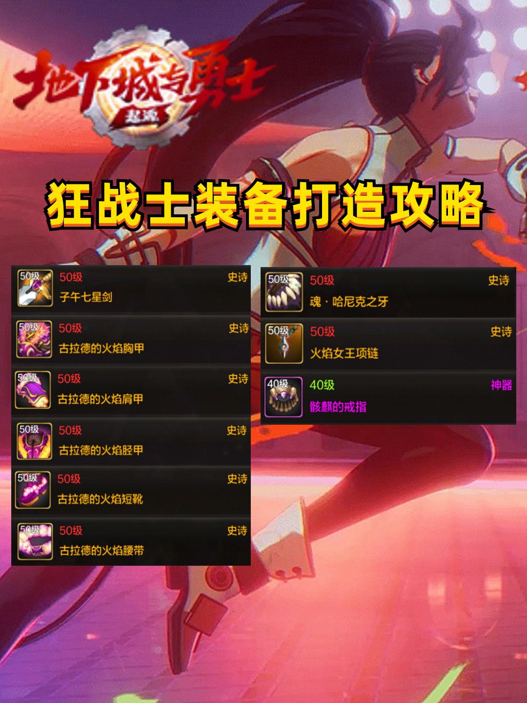 DNF手游:狂战士装备打造攻略,毕业型9件套,助你备战罗特斯!