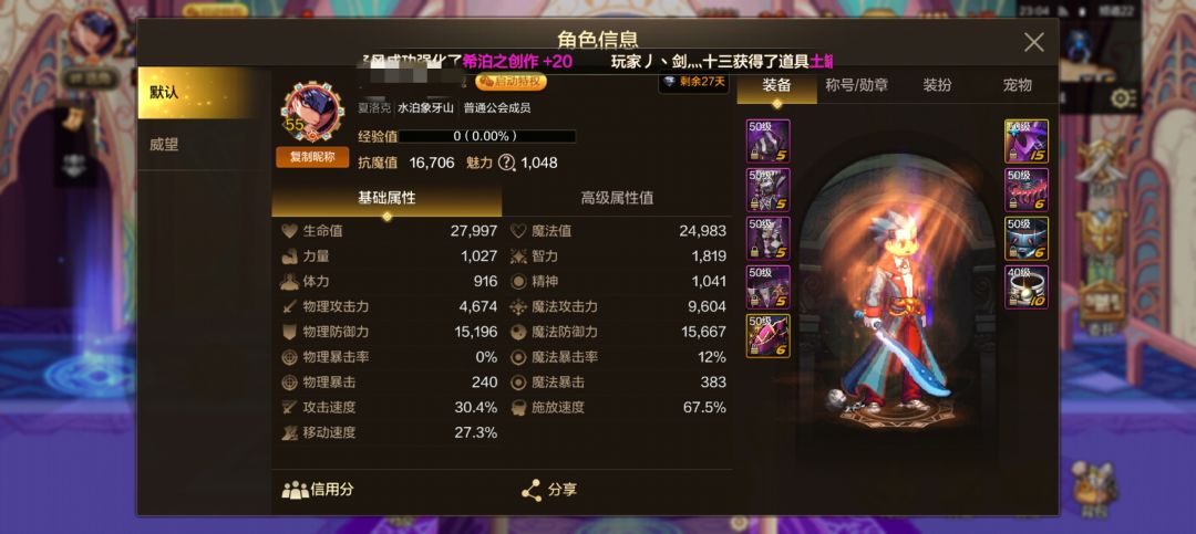 开服玩家,脸黑得不行,不奢望史诗套了,打团甘心当辅C。黑珍珠我区12万最低价,值得入手。项链由悲鸣换到了斗者,简单测试了下,感觉提升不是很大,花了我几十个品级箱(还没到最上级100%)和奇迹石,大词条精神不想调了,性价比低。其他加成和装备如图,宠物装备是pkc换的(紫色性价比高),洗词条也是坑。装备附魔全紫卡,徽章最高7平均应该有6。勋章称号这块不能附魔,还有异界套的基础抗魔比史诗低,所以总体抗魔