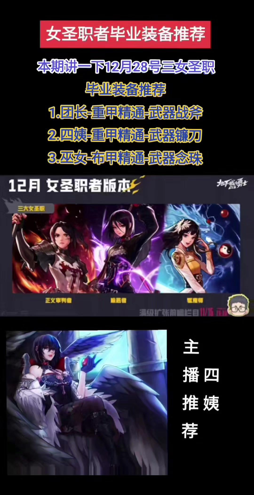 65版本团长·四姨·巫女毕业装备属性推荐,提前留好物资