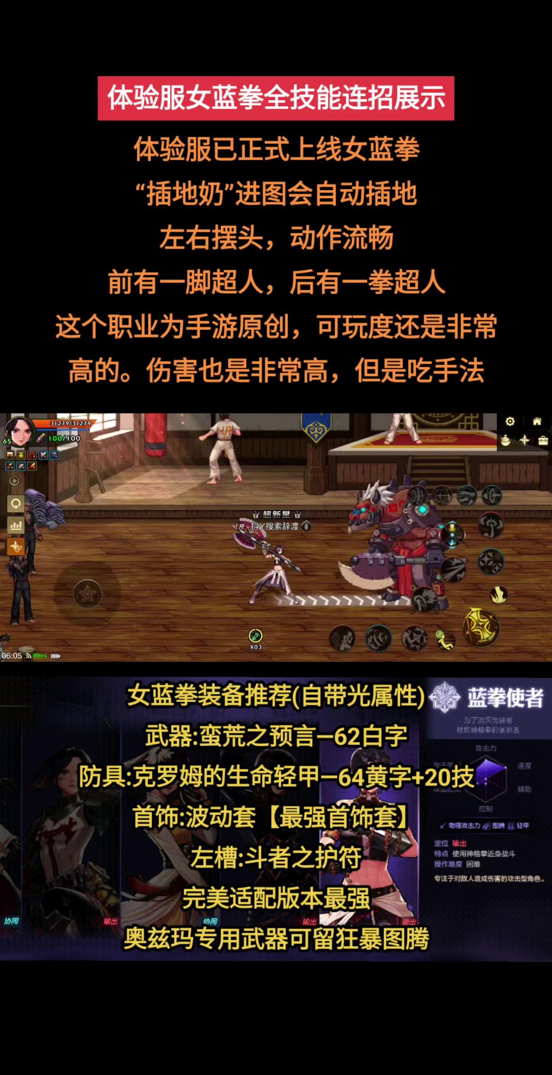女蓝拳使者毕业装备讲解,全技能连招展示