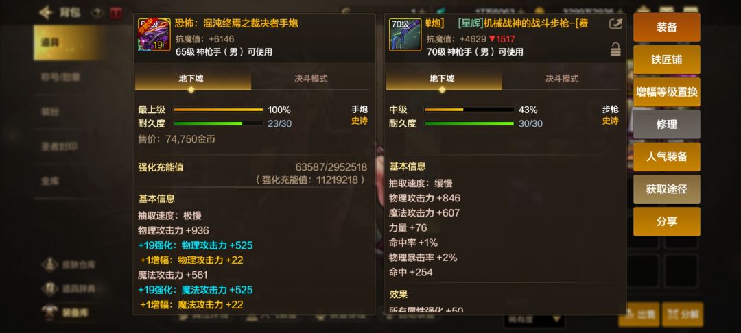 65圣骑士毕业武器对比罗特斯武器,强度如何?