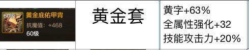 新版本登录当天就送跨界石,大家心心念的宝贝终于是到了,虽迟但到。但是经过2个小版本的发展以及春节至尊称号的出现,现版本的一些毕业防具也是有点变化。 修罗、奶妈等玩家——首推黄金甲 之前因为深海套的强势,多数冲榜玩家如阿修罗,就是穿深海套。而这次的春节至尊称号来袭,修罗第一选择变为本命甲黄金甲了,大家都是知道春节称号的出现变向削弱深海,增强黄字套,而黄金甲刚好是黄字为主的防具,板甲职业毫无疑问首