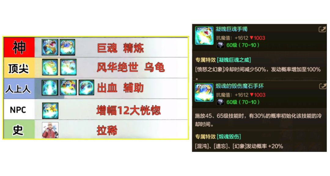 兄弟们,70版本一开,真学套、镇魂曲套、恍惚套这些名字是不是刷屏了?黄金杯、兵书左槽也成了焦点。但最近挖出了三件强度爆炸却被严重低估的宝藏装,其中一件甚至能直接让某个职业封神! 01.精炼套。精炼套外号“赌狗套”,看脸刷新技能,伤害在89%-110%之间。单看墨羽狼的排行数据,它在首饰里排第四。但关键是:精炼套的真正力量,必须绑定“超凡手镯”才能解锁! 戴上超凡,手镯的三个核心效果(混沌、遗忘、