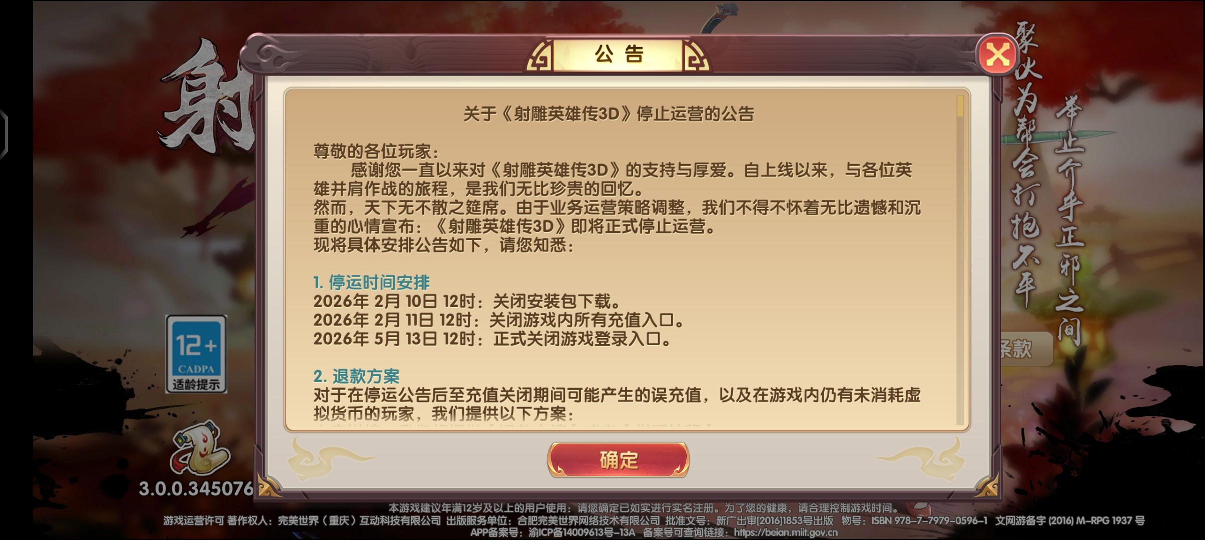 10年前的手游,第二款被我玩到停服的手游,连交流平台都找不到,临时占用个,本来留着偶尔没事就玩公平竞技场,现在也得告别了,也算是经典手游了。我还有两款等关服的,老版秦时明月卡牌、道友请留步,都是玩的一节一节的,全靠死忠玩家和怀旧玩家养,就看谁先关服 DNF倒闭的时候希望还在玩没错过,公告出的时候好歹有个记录,咱也是老古董一级的