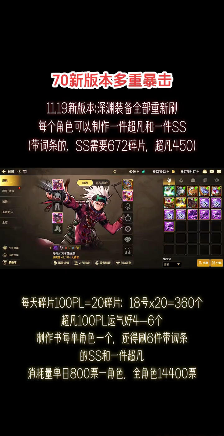 装备套装刚毕业才几天,听说19号后又要刷一次?,要是真的,突然就觉得没意思玩了,太无语了,真就是鸡肋,食之无味,弃之可惜。恶心!!!