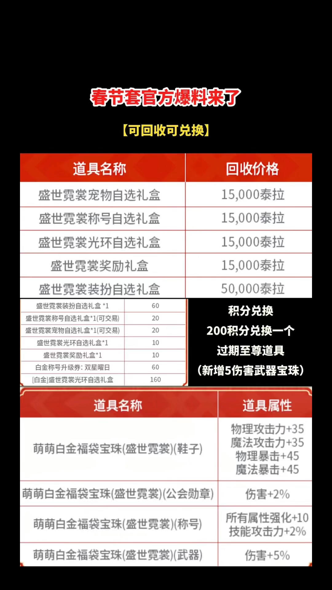 新春套可回收可兑换+所有至尊返场除联动