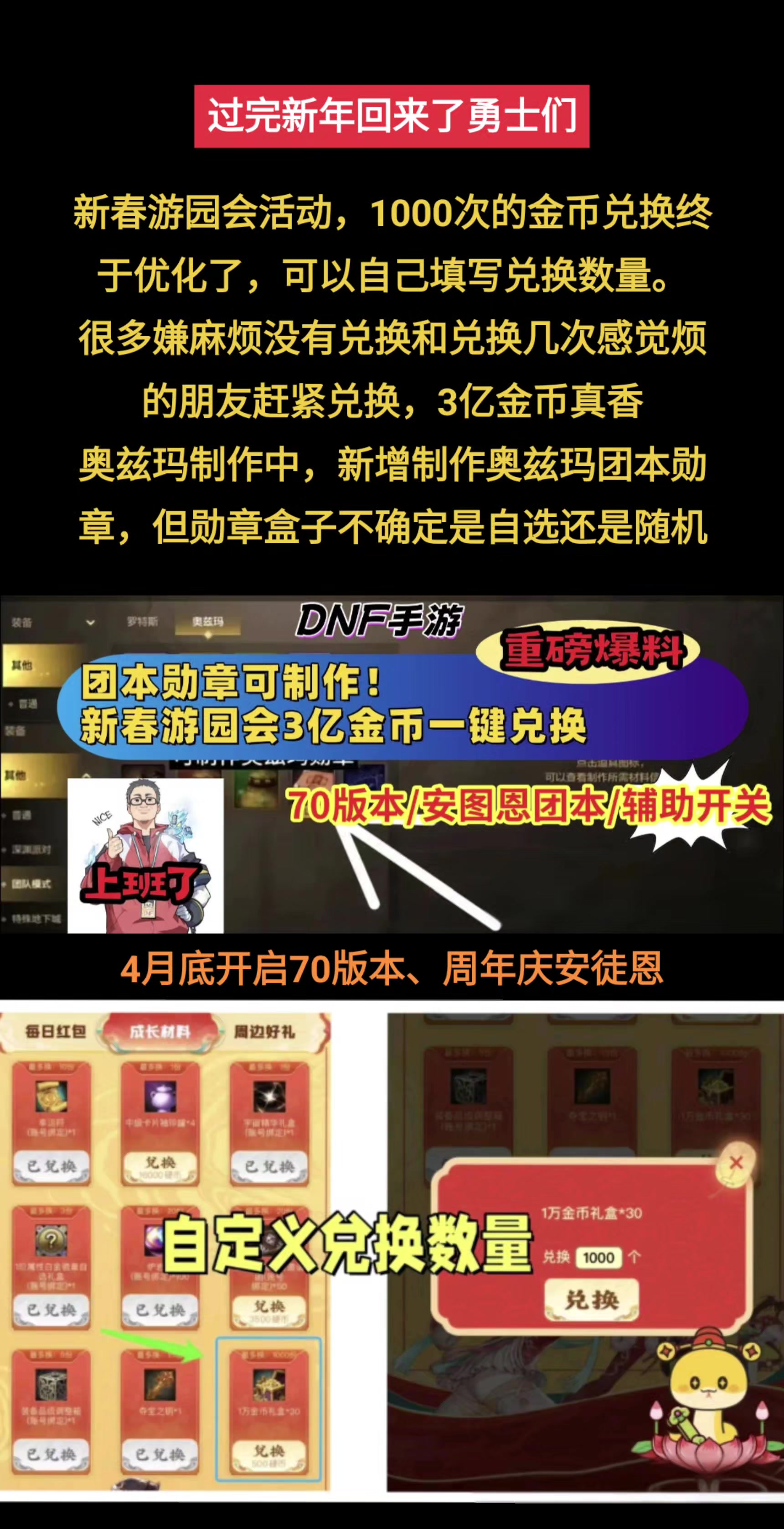 团本徽章可制作,新春游乐园三亿金币可一键兑换了