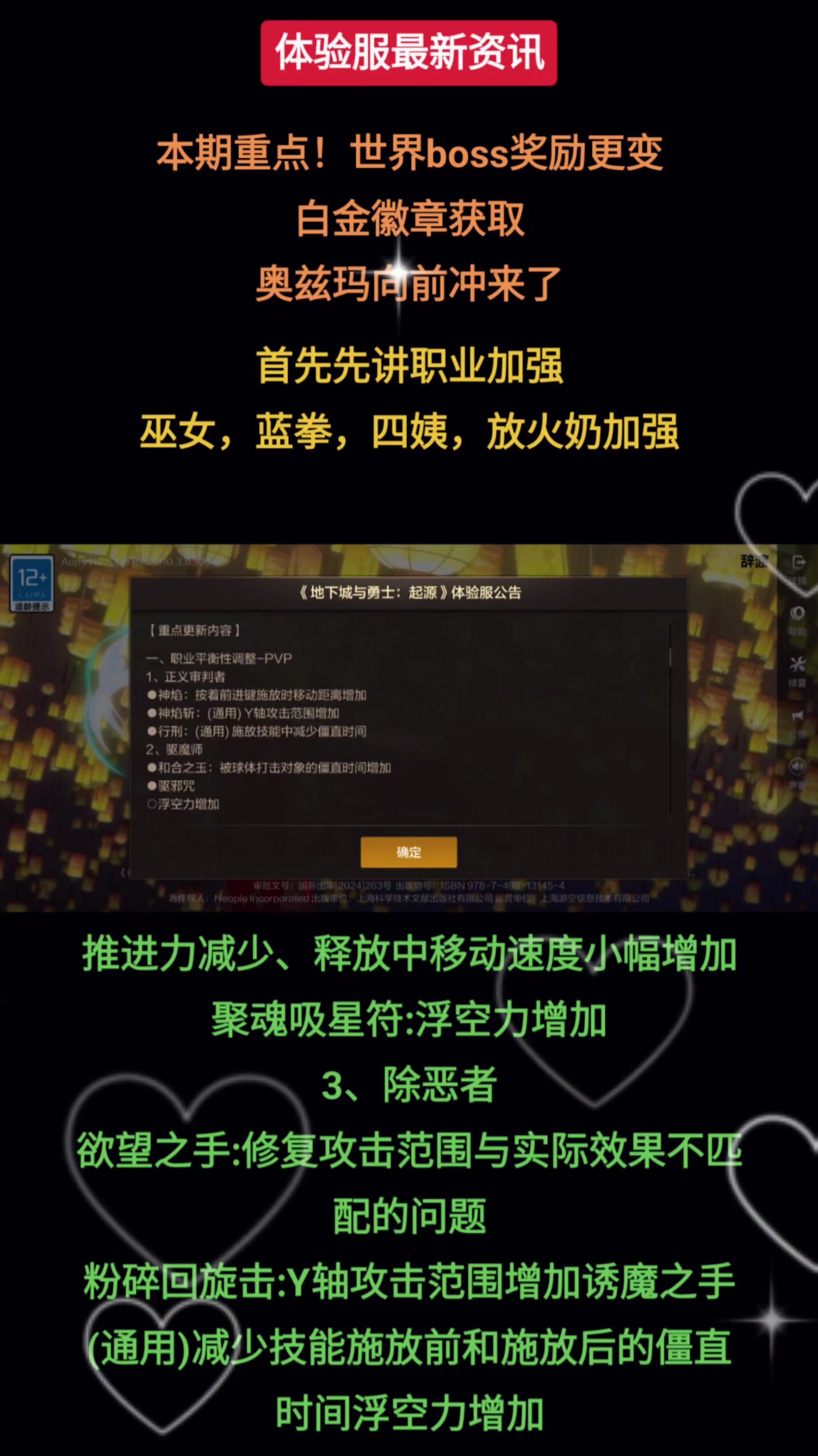 奥兹玛向前冲来了,多职业加强,世界boss卡包奖励更变白金徽章