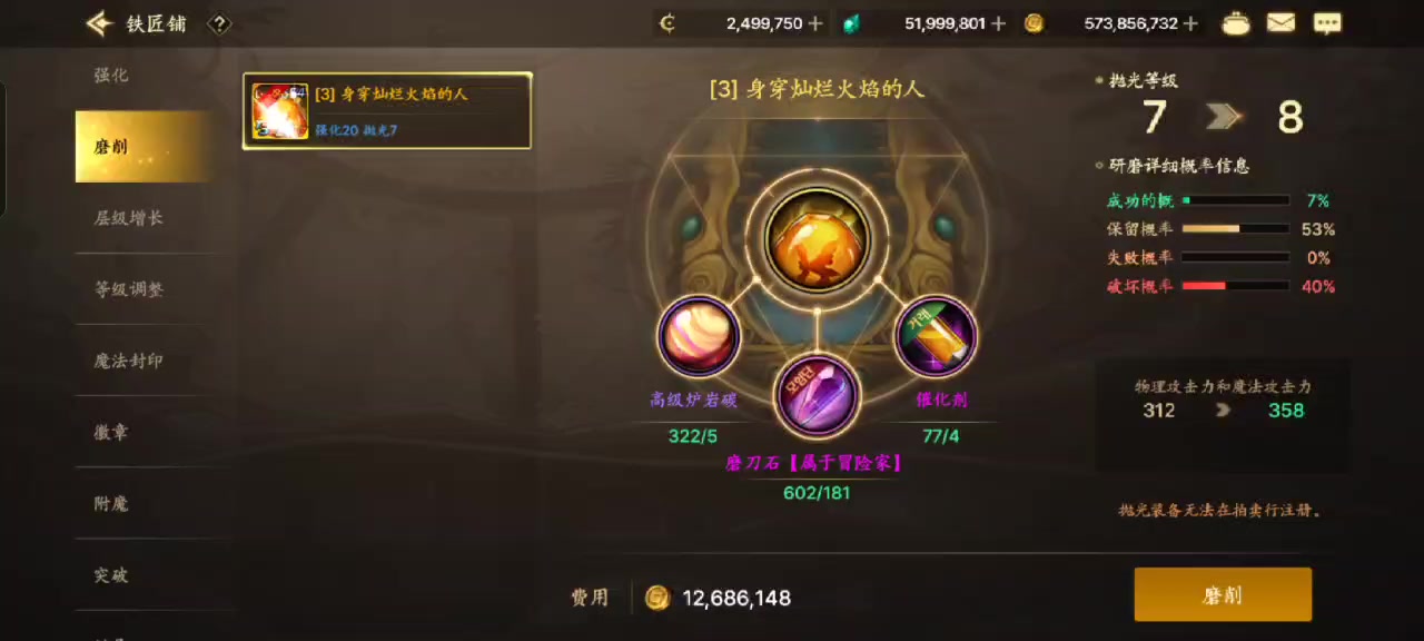 🐴服的研磨没20➕研磨不了失败就掉级或归零无任何保底