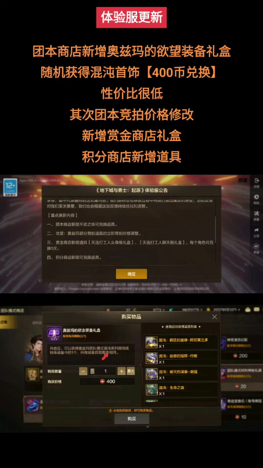 团本商店更新,竞拍道具修改,积分商店新增