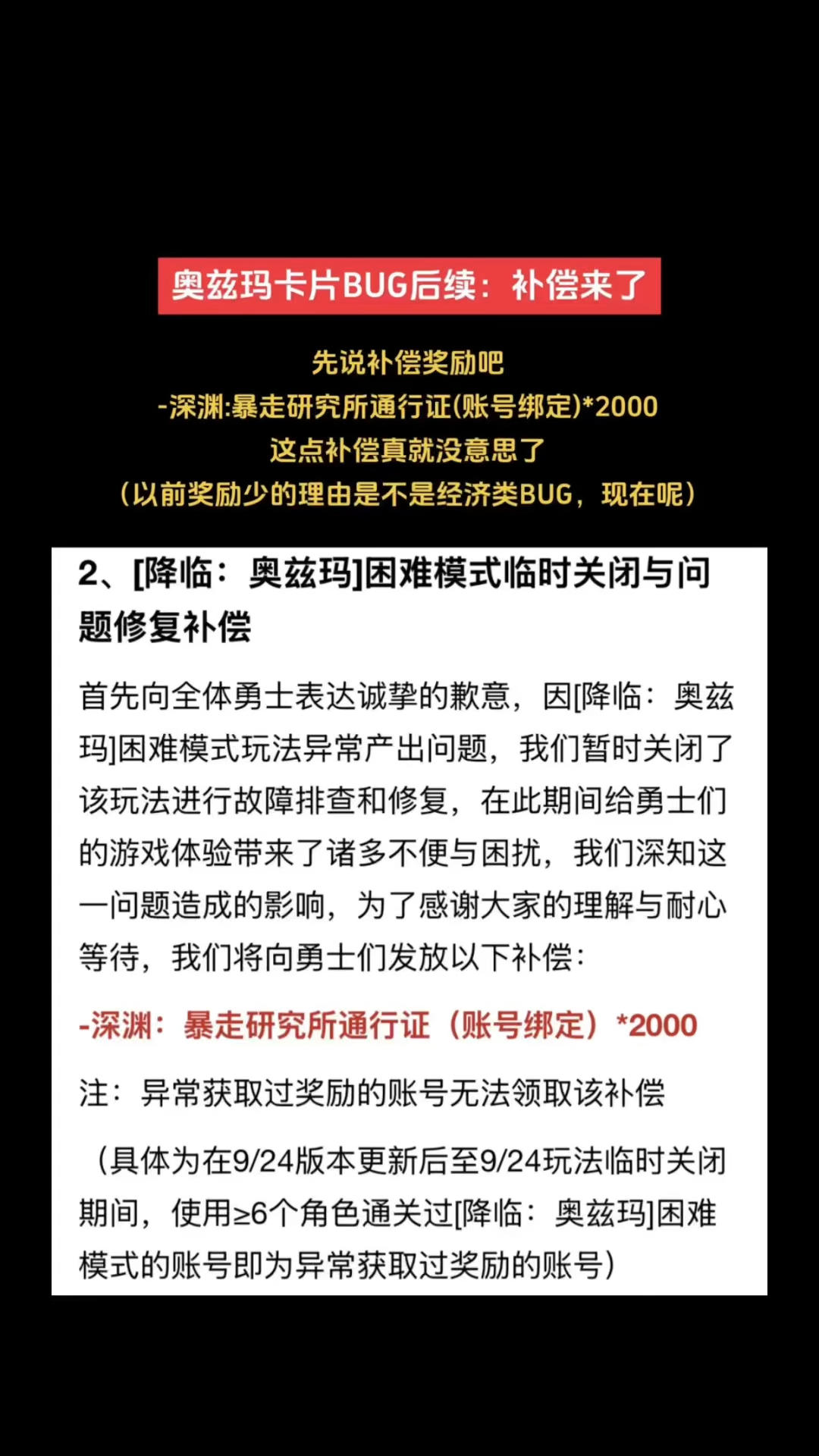 奥兹玛卡片BUG后续:补偿方案来了