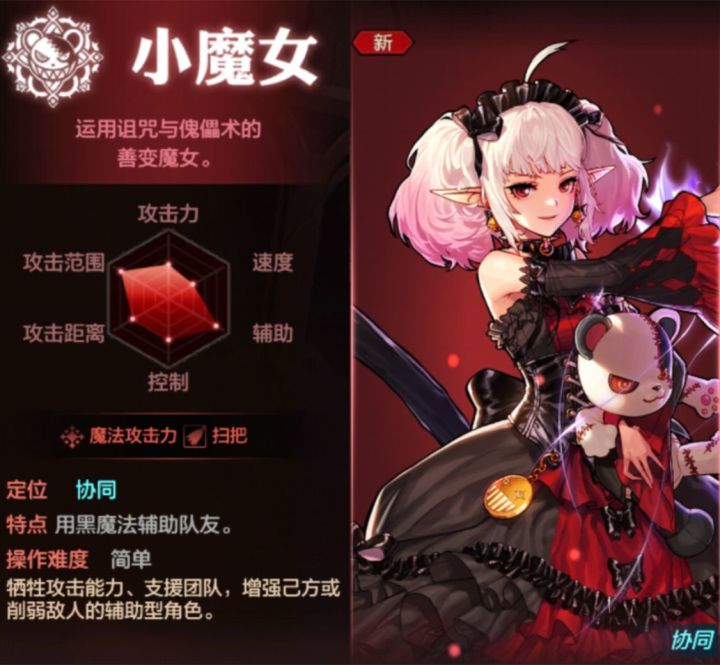 小魔女职业背景故事:“人偶之森”。位于博隆克斯的幽暗森林,是魔界最危险的地方之一。与中央公园的自然森林不同,人偶之森的树木均由魔法生成,每一棵树都可能是一个陷阱。居住在森林腹地的魔女们从不会阻止好奇心旺盛的探险家进入这片森林,只是冷眼看着他们自己一步步走向死亡。这片森林的位置很难被发现,即使冒险家们偶然间踏入这里也很容易在入口处的紫色雾霭中迷失方向。更可怕的是,人们每走一步就会失去一部