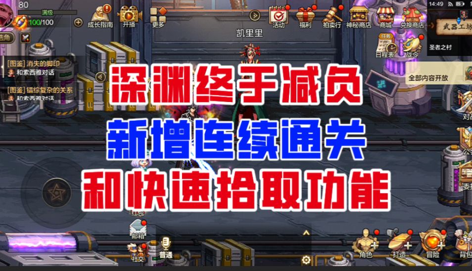 【DNF手游】深渊终于迎来减负!新增连续通关和快速拾取功能!