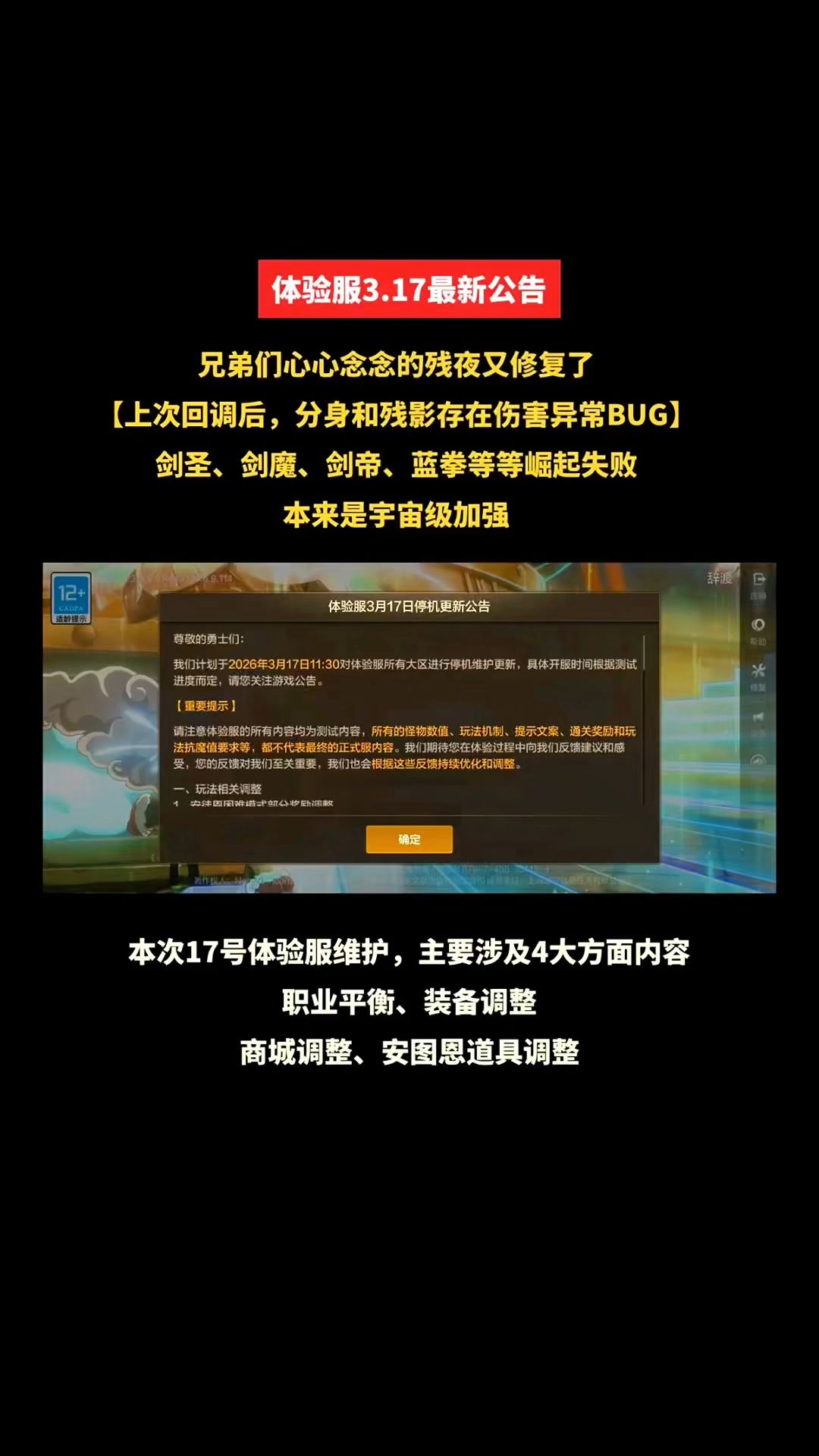 体验服3.17公告:剑圣、剑帝等崛起失败