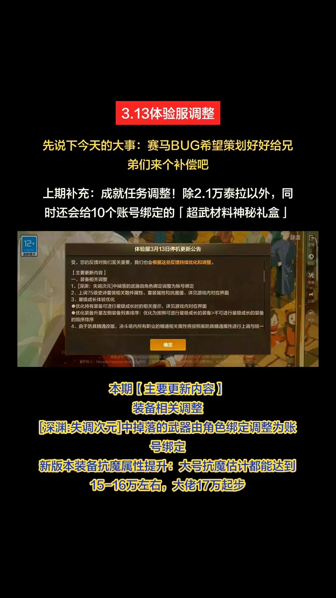3.13体验服:装备再次调整,泰拉车结束