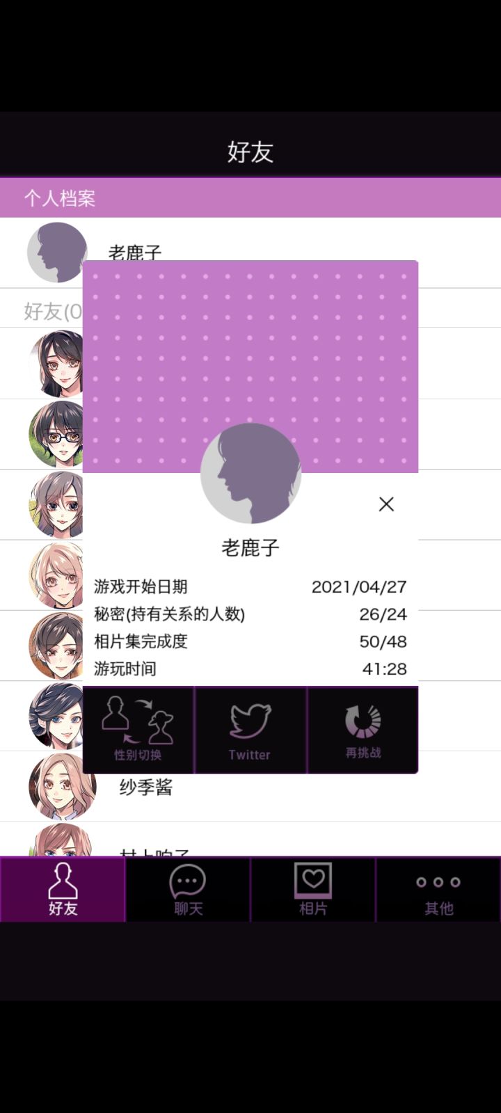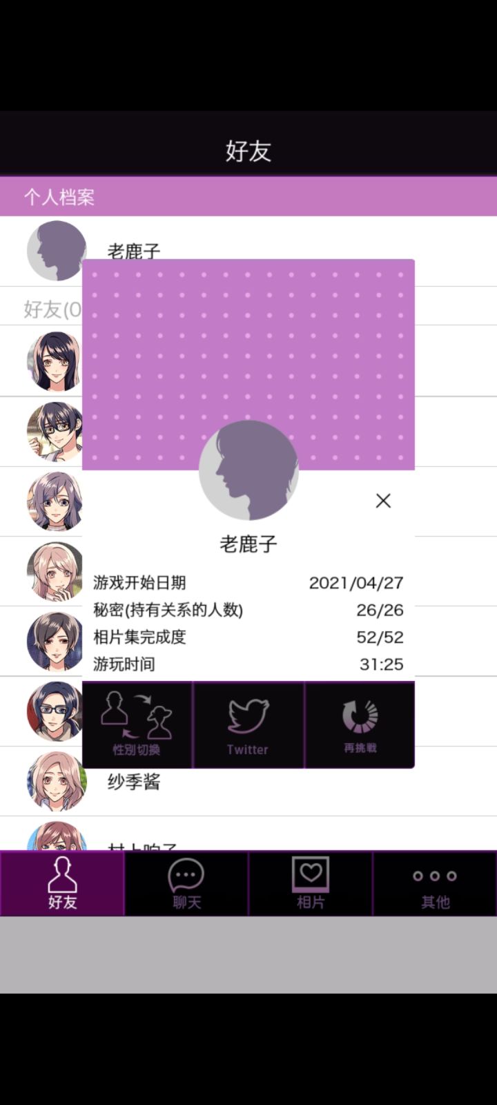 四部通关!!第三部的软件还显示有点问题,有重复显示的所以总数目不对。。第四部的软件全靠百度,就是有几个角色非得等到第二天才解锁,吓得我还以为软件有问题。。
