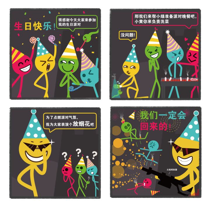 【关于《四大柴子》】不仅想看火柴人?还想看有“柴”的火柴人?火柴人物风云榜Top4的“四大柴子”前来报道!《四大柴子》由精分编辑部——小黄、小红、小绿、小蓝本色出演。柴貌双全为何却惨遭坑害?编辑部友尽互撕为哪般?想了解酱酱酿酿的爆笑日常,记得每周锁定《四大柴子》,带你扒一扒精分编辑部那些不为人知的“内幕”!“生日快乐!!”随着欢呼声和吹响吹吹卷的声音,小绿今年又十八岁啦(为什么要说“又”)!精