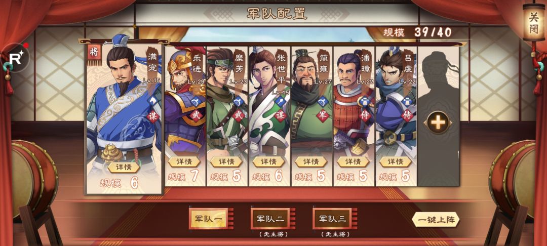 八阵图高层基本上怪碰到就死,所以带不带肉无所谓的。主将带医生能多带一个谋士增加很多容错。 注意事项:1、乐进带山贼弓手能缓解缺令的尴尬, 2、多看怪的行动力和攻击范围,利用地图上的各种高地卡视野,争取一波上去全部控住。 3、如有火药的话可以带2个炮车,谁用谁知道。
