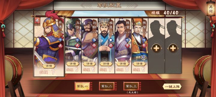 我的练度不够,试了好几次只能过第八关呀,如果你马岱练度高点估计还行,或者还有别的更厉害的输出,乐进换黄忠或者太史慈更好点(难民玩家表示只有乐进),如果你的令够用,陈登可以换个投石车呀。我感觉我的够,我等会再去试试看不突破马岱行不行过9。