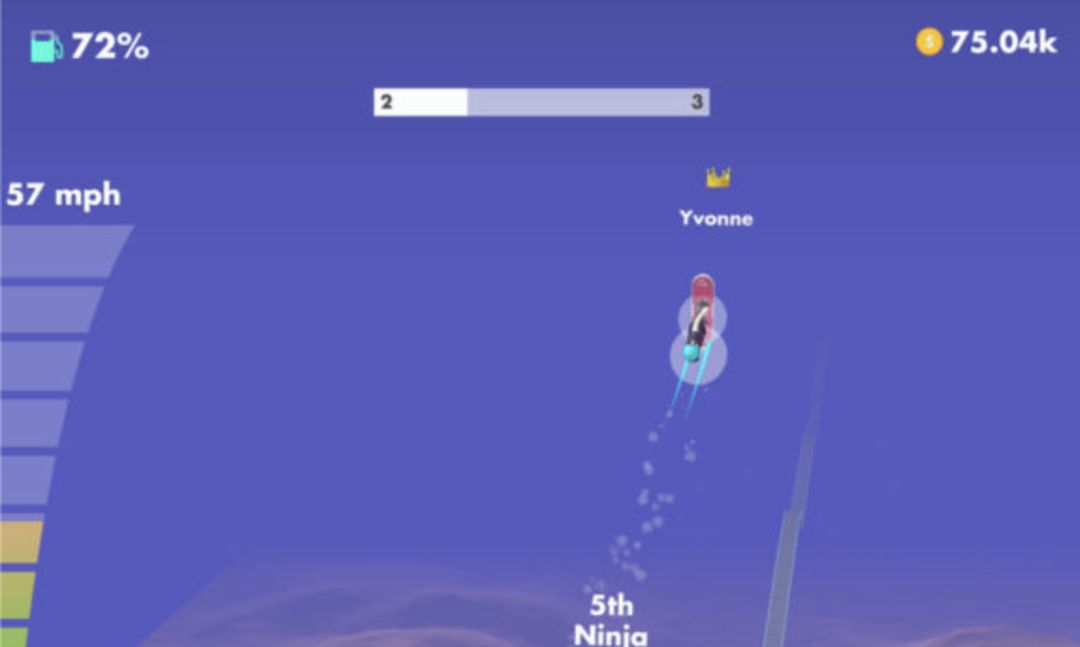 作为一款“赛车”游戏,《Flip Rush!》给玩家的车简直烂到了家,不仅轮胎打滑,还没有刹车,一不小心就翻车,而你正是要开着这辆车,在过山车一般的赛道上狂奔,你的目标是利用有限的汽油,尽可能地跑出高分。在空中旋转一圈能获得至少5%的汽油和一定的金币奖励,但前提是车能安全落地,想挑战高分,你必须冒着风险不断地爬高、旋转、翻车。好在比赛中获得的金币能用来升级速度、汽油和翻转奖励3个属性,有了一