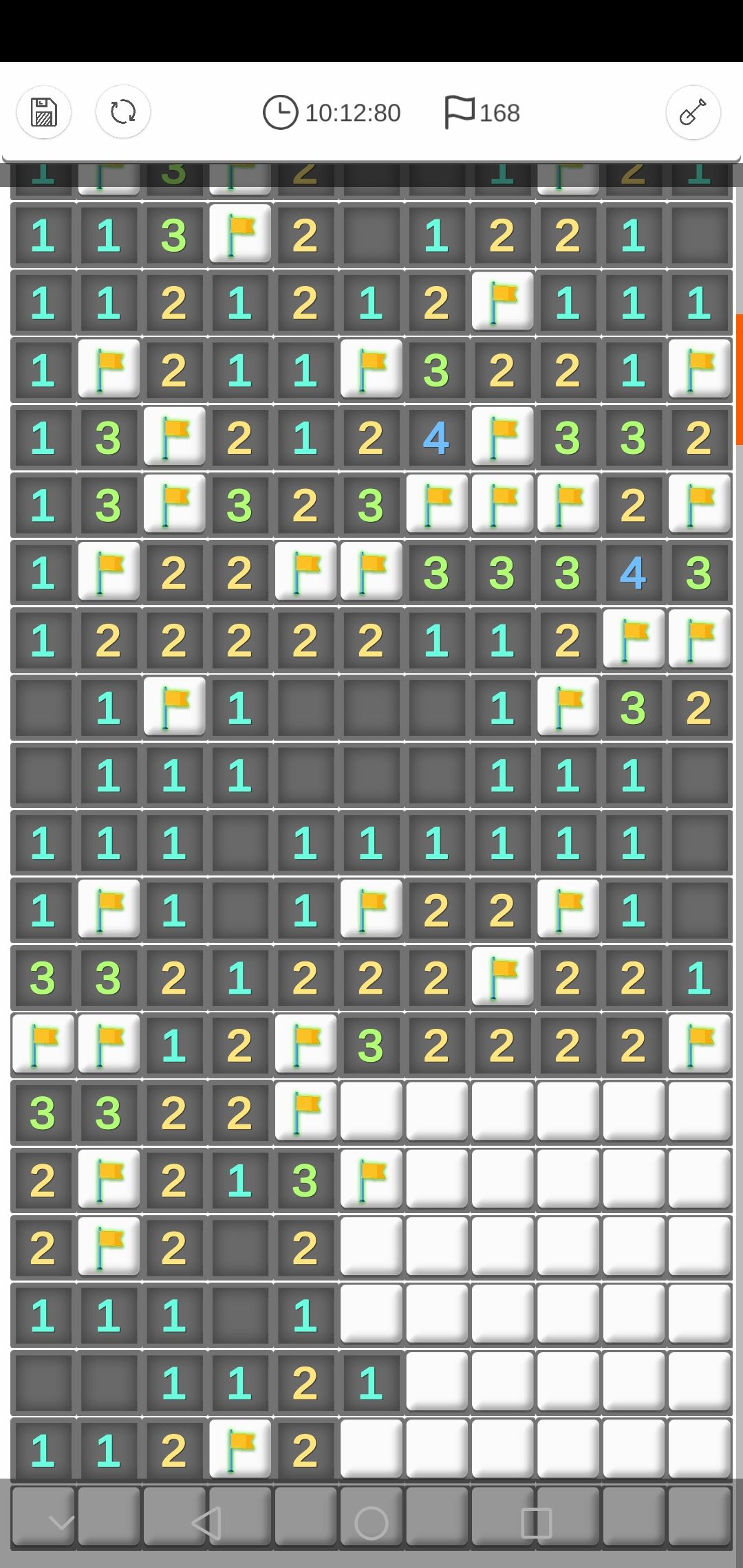 游戏规则:清理所有无雷方块且没有清理有雷方块就赢了。 或者说: 在有雷的方块上插旗子,全部插上就赢了。 那么熟悉了基本规则我们就开始吧! 开局瞎机掰乱点就行。 数字:假设数字为1,则在其3x3的范围内有一个地雷,以此推类,最高数字为8。 那么如何给雷插旗子呢? 插旗:长按含雷方块即可。或者在右上角切换图标从铲子→旗子,再点击含雷方块即可。 而在游戏中,它们的真实现象可能是这样的。 当我们已经找出了
