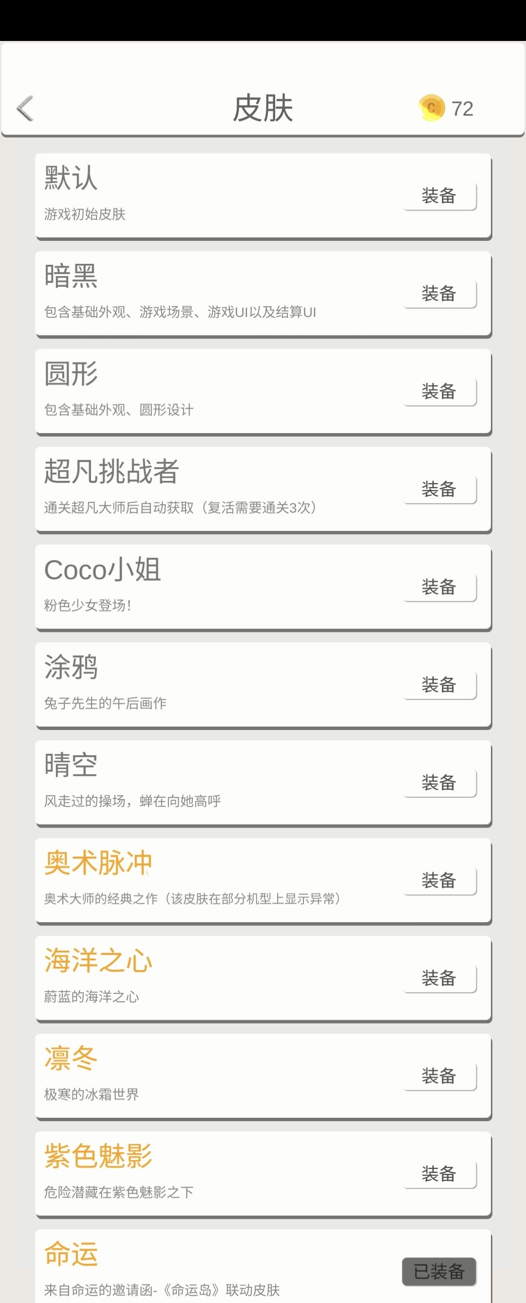 皮肤早就解锁完了(时隔一年,突然发现还发过这个贴,哈哈哈),更新一下。 下面给大家展示所有的17款皮肤。大家谨慎购买 黑色字体是静态皮肤,黄色字体是动态皮肤#游戏讨论#单机游戏