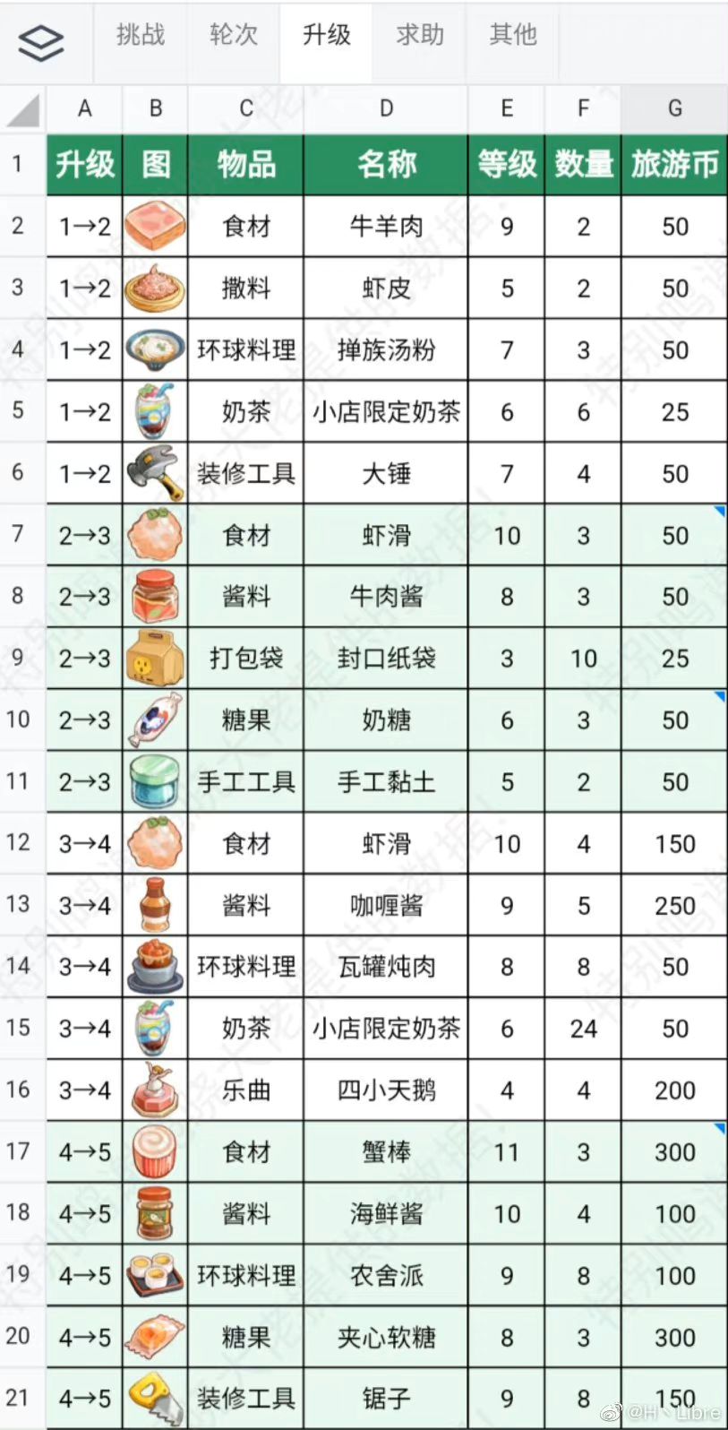 旅行团升级所需物品,搬运自微博旅行串串超话@H丶libre